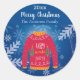 Christmas ugly sweater red blue snowflakes name classic round sticker