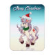 This joyful Christmas magnet featuring an adorable unicorn with red Xmas hat, and a green neck scarf with a golden bell can be customized with any message you like for someone dear.