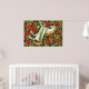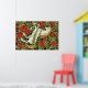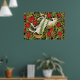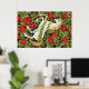 Painting of Christmas Unicorn with red poinsettia flowers and green leaves