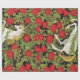 Painting of Christmas Unicorn with red poinsettia flowers and green leaves on a dark background.