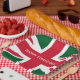 A fun Union Jack of the United Kingdom for a Merry or Happy Christmas in festive red, green and white