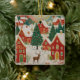 Nestled amongst snow-dusted evergreens, this festive village shimmers with holiday cheer. Did you know that the tradition of decorating Christmas trees dates back to 16th-century Germany? Here, charming red houses with snow-capped roofs peek out from the wintry landscape, while a gentle deer adds a touch of woodland magic. This design evokes the cozy warmth and timeless spirit of Christmas, perfect for capturing the season's enchantment.