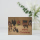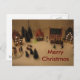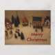 Christmas card. On the front a photo of a model Dickens-style Christmas village, and the text Merry Christmas.