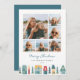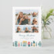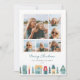 A sweet and festive holiday card design featuring 6 photos in a collage layout, with an illustrated bottom border of hand drawn houses and trees in holiday colors. "Merry Christmas" or your choice of greeting appears beneath your photos, along with your family name and the year.