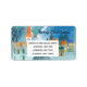 Christmas Party Address Labels with festive Village scene. Custom typography for easy personalisation of the greeting and your name and address.