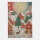 Nestled amongst snow-dusted evergreens, this festive village shimmers with holiday cheer. Did you know that the tradition of decorating Christmas trees dates back to 16th-century Germany? Here, charming red houses with snow-capped roofs peek out from the wintry landscape, while a gentle deer adds a touch of woodland magic. This design evokes the cozy warmth and timeless spirit of Christmas, perfect for capturing the season's enchantment.