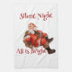 Vintage Minimal Watercolor Santa Claus sitting on Modern Elegant Typography Silent Night! All is Bright! Christmas Kitchen towel. Matching products available.