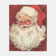 Vintage image of Santa Claus on a dark red, snowy background. He has the perfect, pert, grin, bright eyes and rosy cheeks.