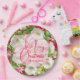 Personalised large paper plates feature modern, elegant winter flowers and a pink poinsettia with Merry Christmas and your name in chic lettering. MATCHING items in our store.