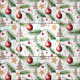 Lovely Christmas watercolor pattern featuring pine branches, Christmas bells, gingerbread cookies, red Christmas bulbs, dots and stars in red and green.