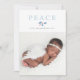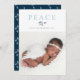 Christmas peace in traditional lettering, non-secular holiday photo card with winter blue holly and pine sprigs and red berries.