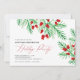 This business holiday party invitation features a beautiful watercolor graphic of pine branches accented with red blossoms.