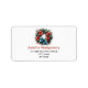 Address labels with a pretty Christmas wreath. A festive image with a pine wreath decorated with red flowers, holly and a lovely blue bow. Delightful.
