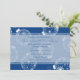 Christmas Wedding photo invitations in classic blue and white with elegant snowflake patterned decorations, Customizable with your wedding details and your own photo. Available in matching winter holiday stamps, envelopes, labels and cards.