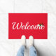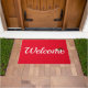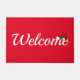 Welcome doormat is shown in a holiday santa hat print.