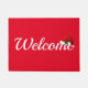 Welcome doormat is shown in a holiday santa hat print.