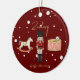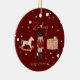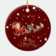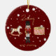 This whimsical red Christmas tree bauble design features a Children's Nutcracker scene complete with a rocking horse, drum set and toy soldier on the front with a Santa's sleigh and faux Gold foil Merry Christmas on the back. This luxury kids personalized Christmas tree decoration is complete with a gold rustic script custom kids name and Merry Christmas message.