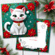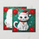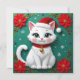 A Christmas card that you can personalize with your own message. On the front is a cute white cat with a Santa hat and poinsettias.