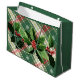 Christmas White Gold Green Plaid with Wreath Gift Bag.