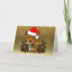 Let your wild side out this holiday season with this dramatic wildcat wearing a santa hat and surrounded by sprigs of holly.