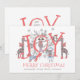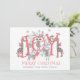 Whimsical unique illustrated JOY typography Christmas winter animals holiday card, A unique collage of painted woodlands and safari party animals. Red, blue and grey on white. Quirky cute type and a spray of boughs. Make this holiday CHEERFUL! Personalise with your names.