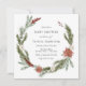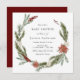Winter themed baby shower invitation features a frame of watercolor wreath of evergreen, poinsettias and pinecones. Personalise with your information or click "Click to customise further" to edit font styles, size and colours.