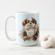 ADORABLE WINTER WARMER! Cute Winter Christmas large mug with the cutest Blenheim Cavalier King Charles Spaniel Puppy on the light blue snowy background. Easily personalise the text.