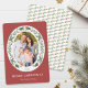This festive Christmas holiday card showcases an oval photo framed with winter greenery and red berries. Personalise this modern elegant holiday card by adding your photo and family name.