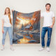 Christmas Winter Log Cabin Snow River Sun Fleece Blanket