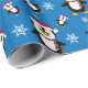 Christmas Winter Penguin on Custom Blue Background Wrapping Paper