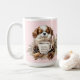 ADORABLE WINTER WARMER! Cute Winter Christmas large mug with the cutest Blenheim Cavalier King Charles Spaniel Puppy on the light pink snowy background. Easily personalise the text.