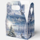 Pretty favor box for your Winter Wonderland celebration. Cute white Rabbit sits in the snow among the pine trees as stars and snowflakes fill the sky. Personalize for Christmas, Wedding, Bat Mitzvah or Quinceanera or any age birthday.