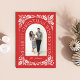 A unique and modern holiday card featuring an arch photo shape with modern styled typography that curves elegantly around your photo, and original hand-drawn winter foliage artwork. The back features a matching pattern and a 3 photo collages you can share more of your favourite photos. Easily personalise the front and back with your own text and photos using the template provided. To customise even further, click on the “Edit using Design for Tool.” Feel free to message me for any minor tweaks, custom greetings or colour alterations. Shop more unique holiday cards at www.zazzle.com/store/nbpaperco