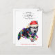 A fun holiday Christmas card featuring a cute watercolor dog in Christmas lights and simple typography text that reads "Christmas Wishes and Doggy Kisses". Easily change the text to Dog Kisses, Puppy Kisses, etc. The backside features a paw pattern in the shape of a heart. Perfect for anyone who loves their fur baby.