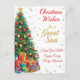Send heartfelt holiday love with this bright, festive card featuring the sentiment: "Christmas Wishes for a Great Son. Hope You Will Enjoy Every, Merry Moment." The design includes a lush, fully decorated Christmas tree piled high with colourful gifts and a golden star topper, set against a whimsical background of confetti and stars. This design is perfect for sending warm, traditional, and loving greetings to your son this holiday season.