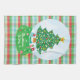 Christmas Wishes Tree and Presents Snow Globe is a hand-drawn illustration featuring a Christmas Plaid background, a Snow Globe with snow, and a Christmas Tree and Presents inside.