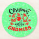 Christmas with my Gnomies - Funny Red Green Round Paper Coaster