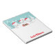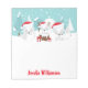 This cute and fun notepad can be personalised with a name. The design features an adorable arctic fox family in a winter wonderland setting with snow capped trees. The foxes in Santa hats add a festive touch. In the background is a teal blue green sky and falling snowflakes.