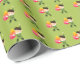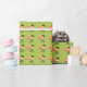 The background of the wrapping paper is a solid, vibrant green that contrasts beautifully with the brighter tones of the elves and gifts. This simple yet lively background ensures that the whimsical elf design remains the focal point. The repetitive layout creates a uniform and eye-catching appearance, making it ideal for Christmas gift-wrapping.