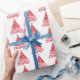 Wrapping paper is shown in a cute Merry Christmas and tree print.
