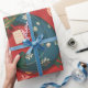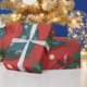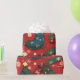 This is wrapping paper with pictures of various Christmas props such as small green Christmas trees,