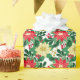 This holiday wrapping paper is shown with a festive poinsettias print.