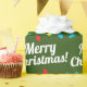 A festive christmas warpping paper with Christmas lights and a Merry Christmas writing pattern. The cusive writing is bold and therefore eyecatching.