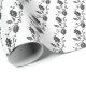 Wrapping paper shown in a festive Christmas holiday black holly print. Matte paper shown.