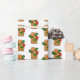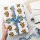 Holiday gift wrapping paper shown with a cute festive gingerbread man print on a white background.