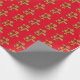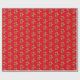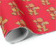 Holiday gift wrapping paper shown with a cute festive gingerbread man print on a red background.