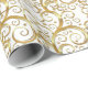Holiday gift wrapping paper shown with a fancy pretty gold swirls print on a white background colour. Choose your background colour.