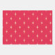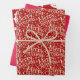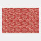 Christmas wrapping paper multi-pack that includes: 1) Gold Merry Christmas on red background, 2) Gold stars on red background, 3) White winter foliage on red back ground.