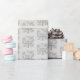 Holiday gift wrapping paper shown with a fancy partridge in a pear tree print in a silver colour on a silver background colour.
