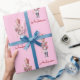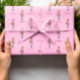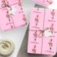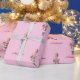 This Christmas wrapping paper features a lovely watercolor illustration of a pine tree, that has simple and elegant red decorations. It creates a modern, minimalist pattern in a light pink background.